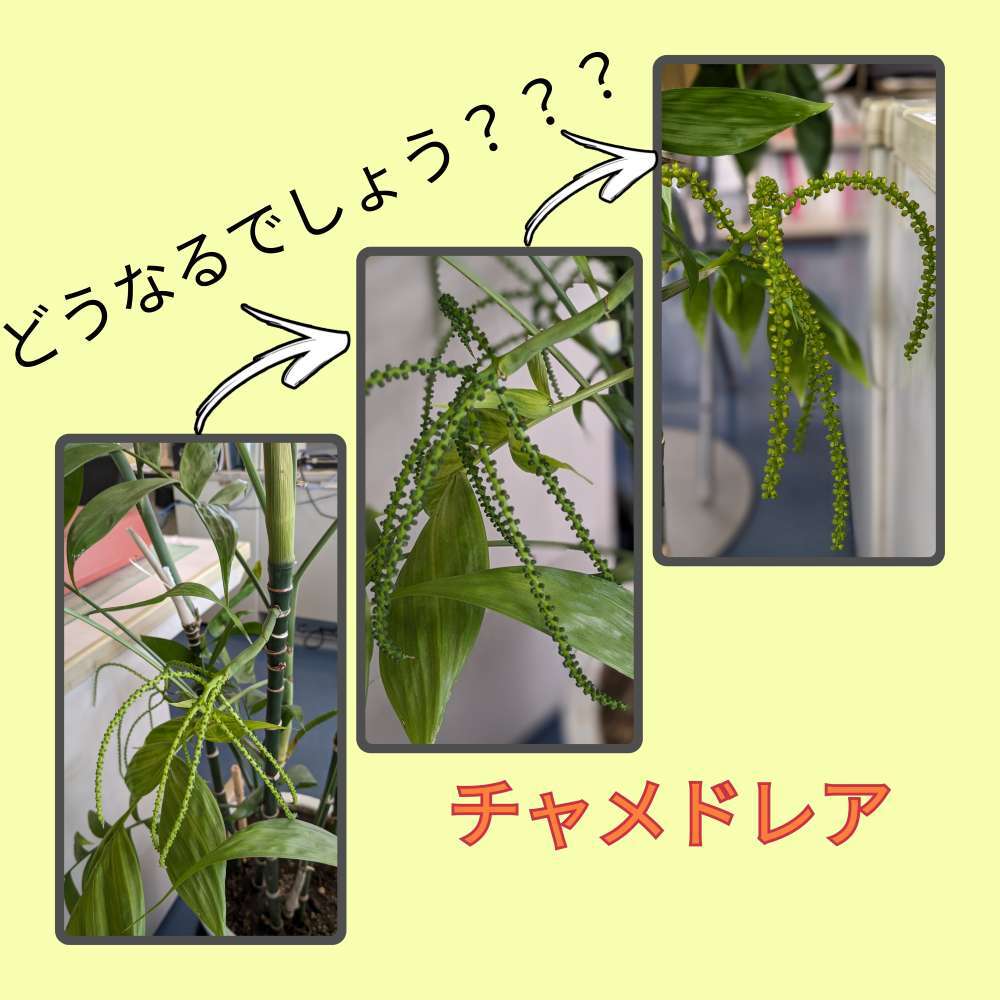 約1か月前、会社事務所内にある観葉植物『チャメドレア』に変化が表れました!