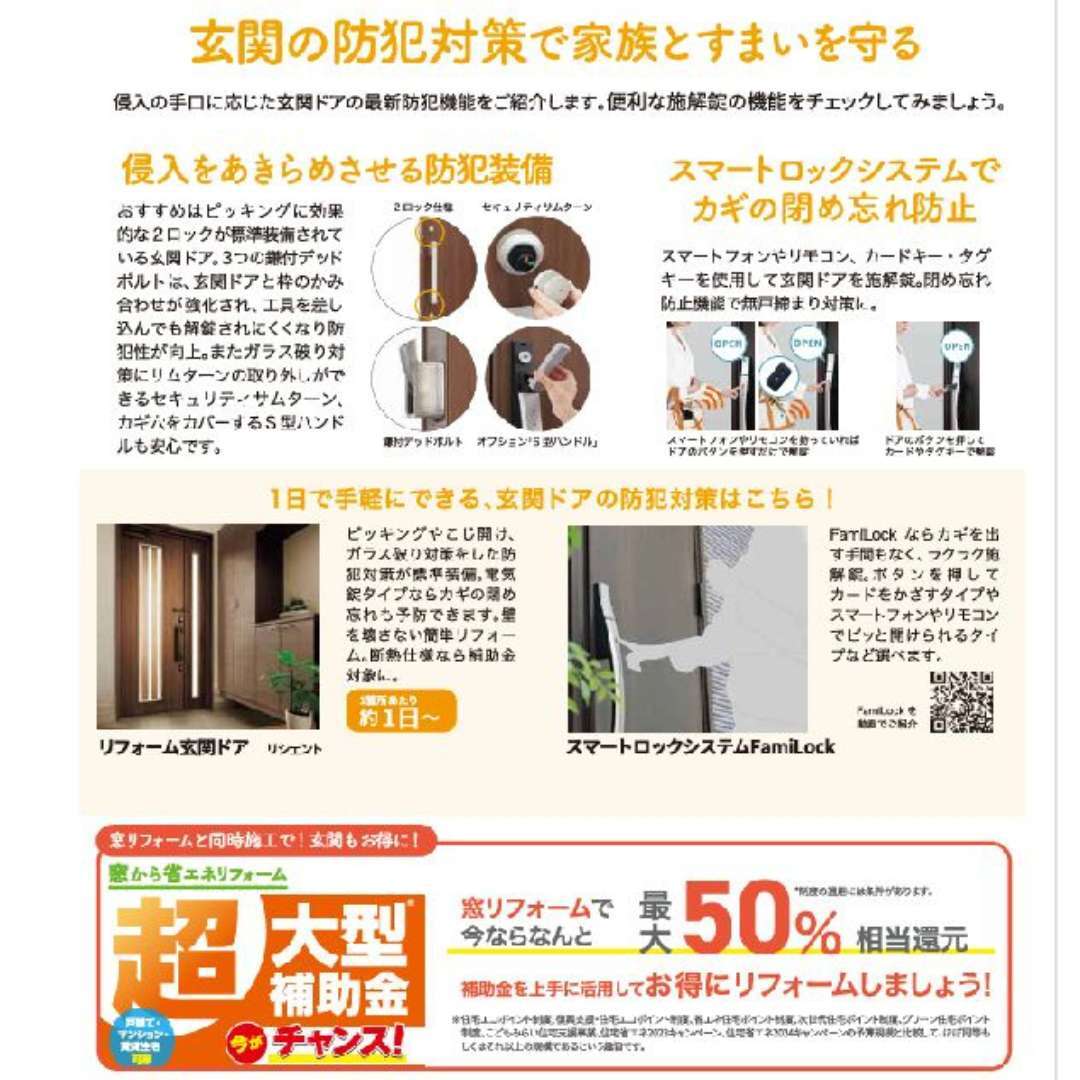ドアデザインや窓との同時リフォームなど条件により補助金も受けられます。
