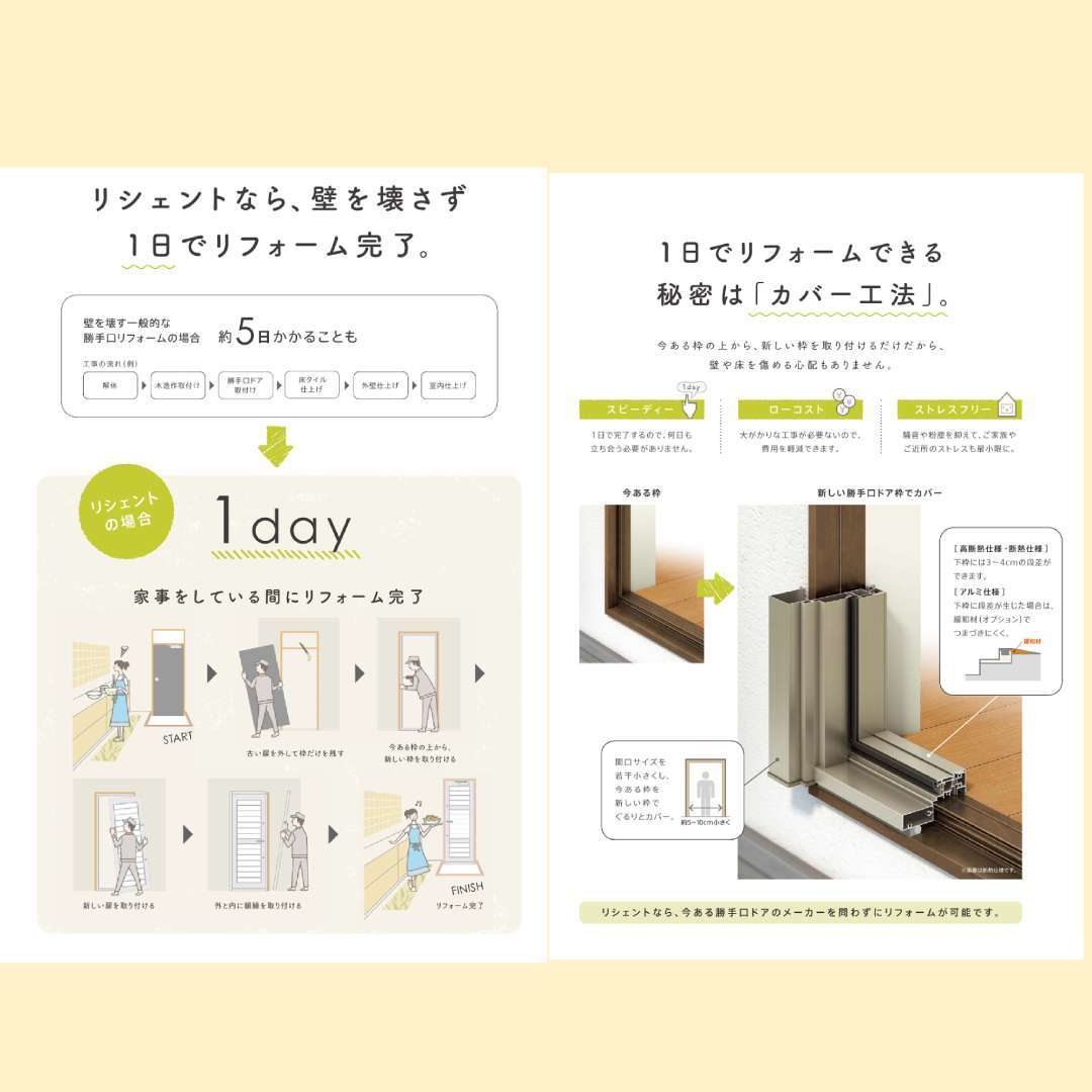 このリシェントはお家の壁を壊さず簡単に新しいドアへと交換できるリフォームで