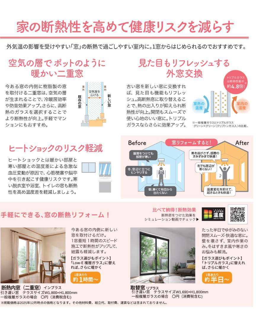 外気の影響を受けやすい窓の断熱性を高め、健康寿命を延ばしましょう。