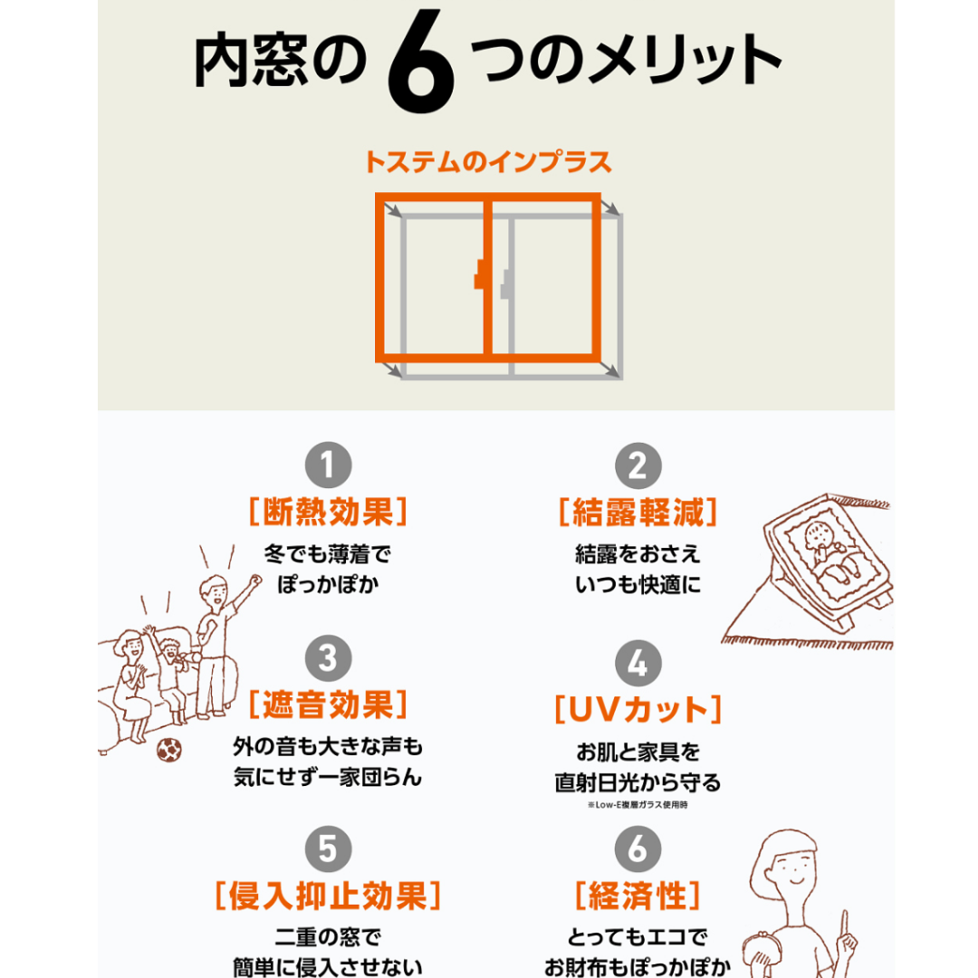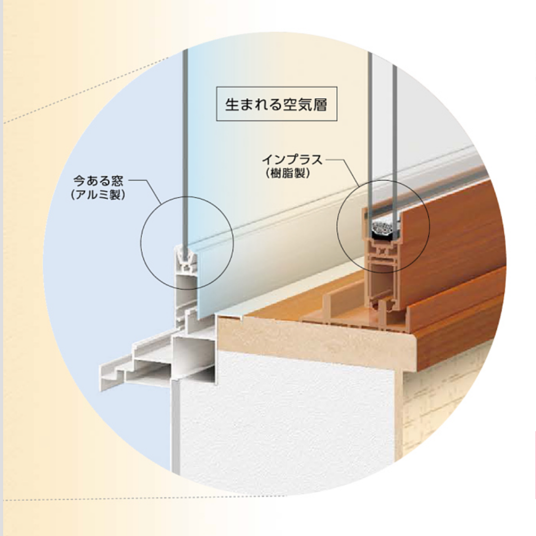 「インプラス」で内窓を設置することで空気層が出来、外気が直接伝わるのを防いでくれます。