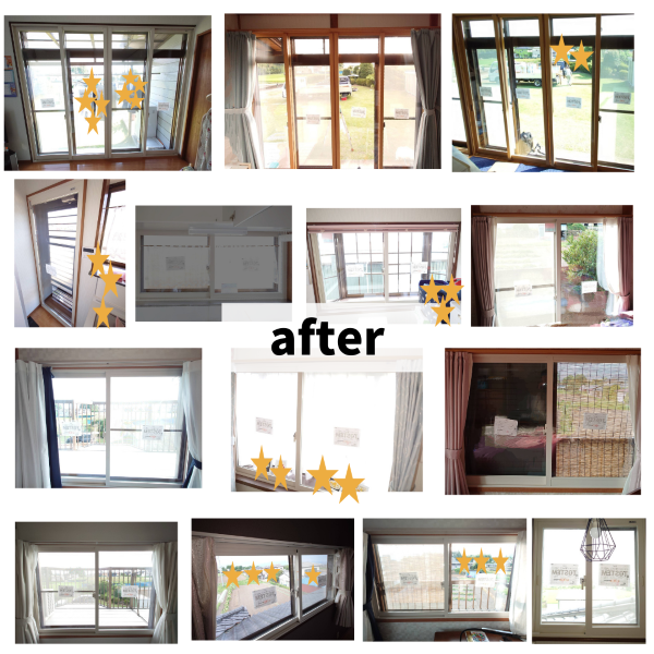 お客様のお住まいに合計14か所の窓に内窓を設置しました。