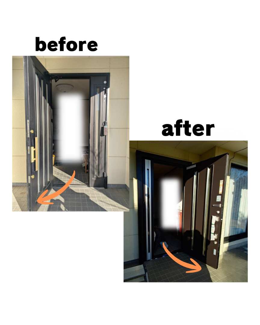 ドアの開閉が自然になり、毎日の出入りがストレスなく行える玄関へと生まれ変わりました。