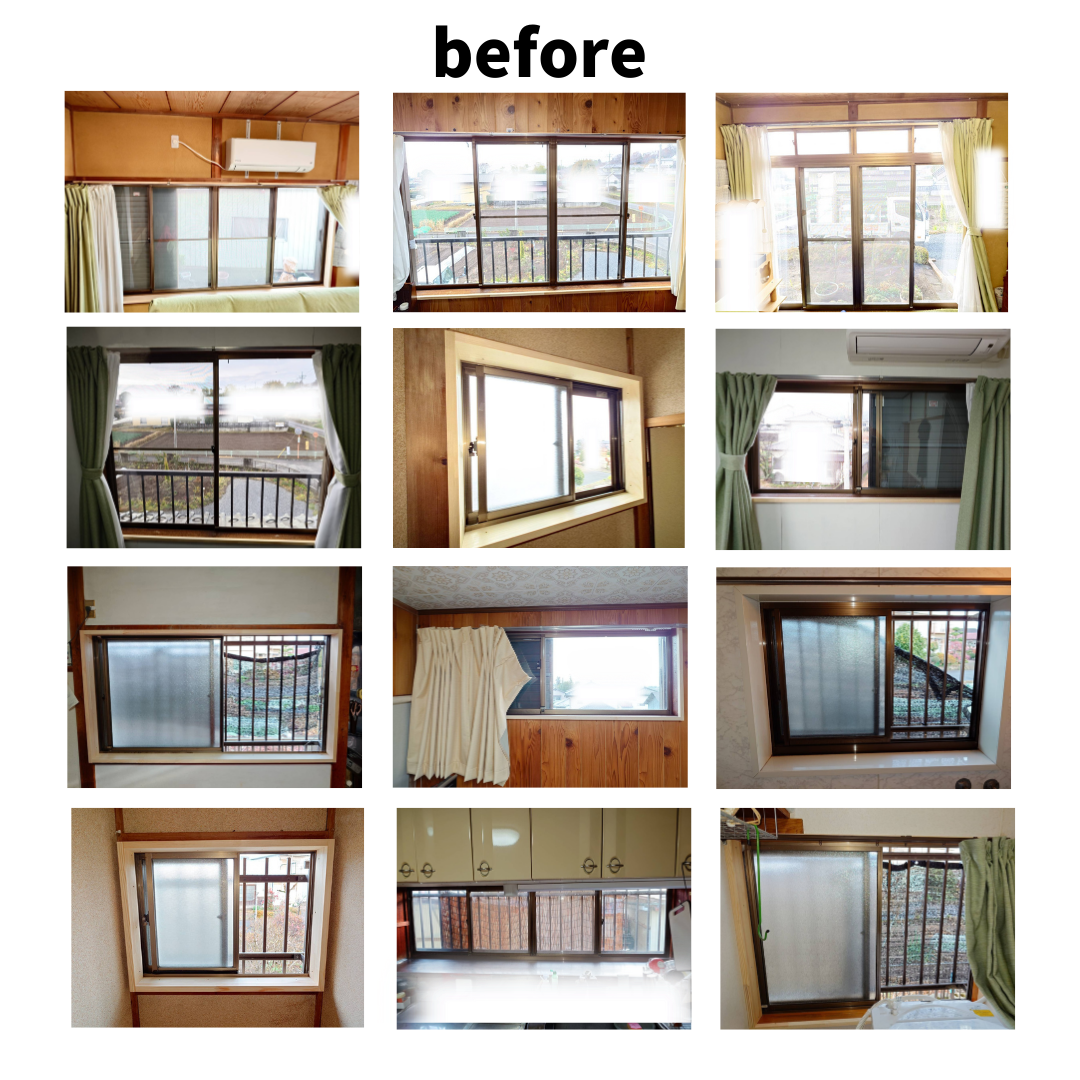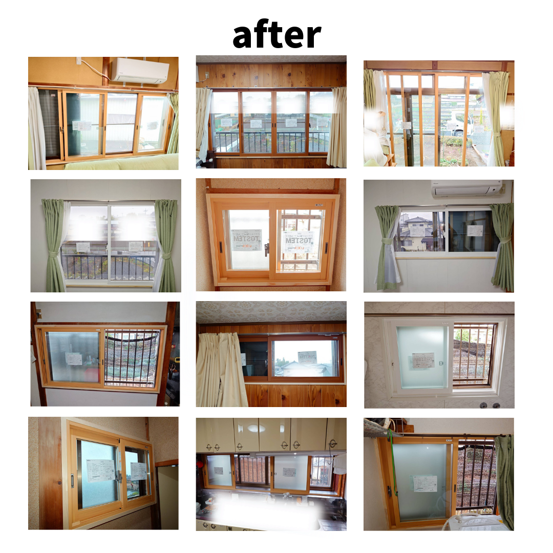日常生活でよく使うお部屋を中心に、合計12か所の窓にインプラスを取り付けました。
