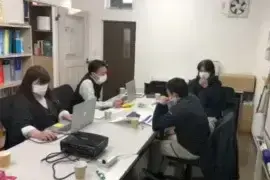 帰社して、荷物の整理や当日の報告事項を共有します。時間があれば、明日の準備も行います。